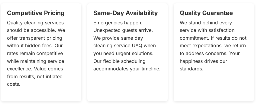 Ready for a Spotless Space? Get same-day deep cleaning services in Umm Al Quwain. Our trained professionals are standing by to transform your home or office today. Call Now for a Free Quote: +971545087025